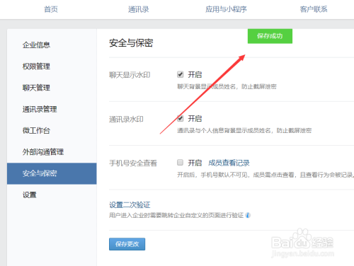 企业微信聊天显示水印设置当作功后,在页面是有提醒的,如下图所示。