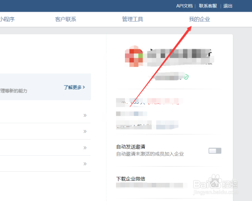 当作功登录企业微信办理后台后,直接点击导航栏里的【我的企业】,如下图所示。