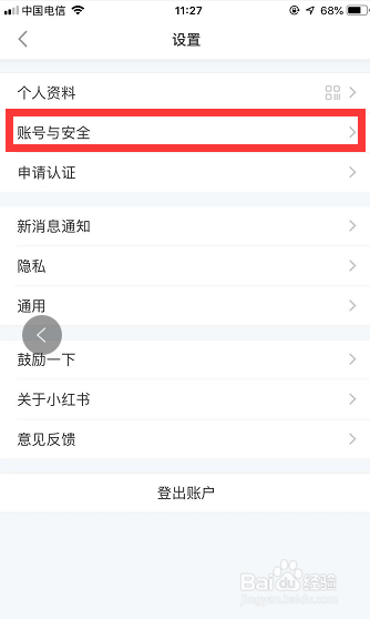 点击后进入设置本家儿页,在设置本家儿页下找到【账号与平安】一栏,点击【账号与平安】!