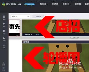 若是你已经有店招,可以在你的店肆上-鼠标移到店招点击编纂点窜上传