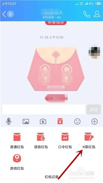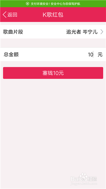 然后就可以进行付出了,这样老友收到K歌红包必需唱歌才能领取。