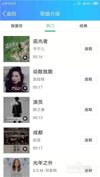 歌曲分为三类,但每个分类的歌曲都是固定的几个,只能选择这些。