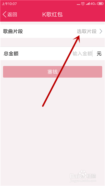 利用了歌曲后起头发红包,点【塞钱】。
