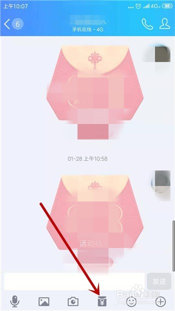 聊天界面点击底部【红包】功能。