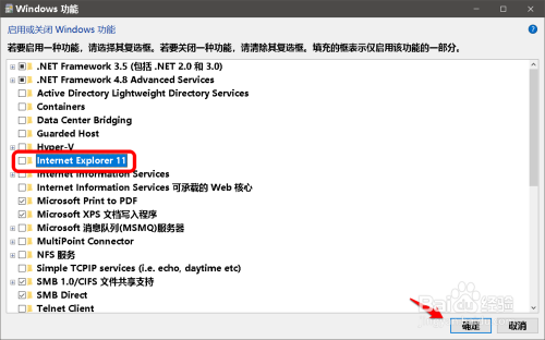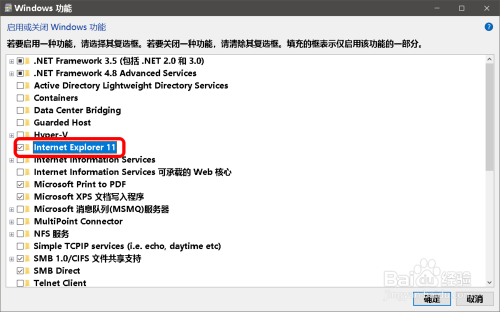 在 Windows 功能窗口中,我们可以看到: