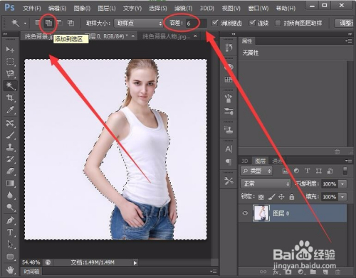 设置容差值,并设置选择体例为添加,用魔术棒东西选择好布景区域。