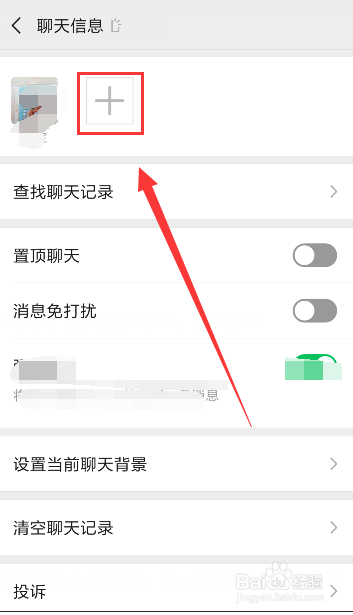 就来到聊天信息页了,点击顶部的加号,如图所示