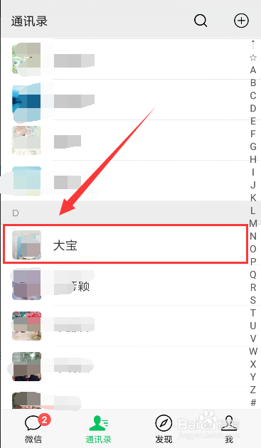 进入我们熟悉的微信页面,然后,在动静页中找到某个老友点击进去,如图所示