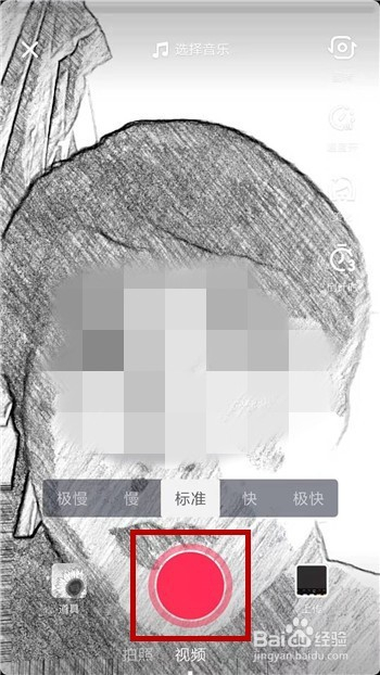 利用后可看到整个录制界面都是素描的气概,点击起头录制素描视频。