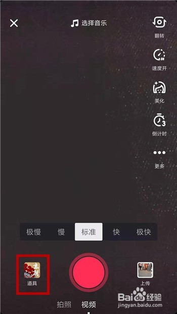 打开视频拍摄界面后点击左下角的【道具】选项。