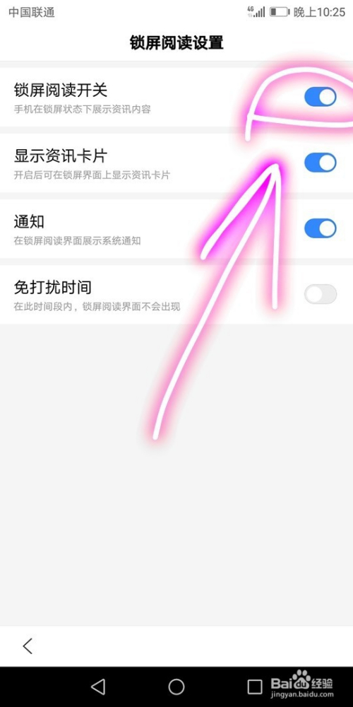 我们最后将锁屏阅读开关打开即可在锁屏状况中看到资讯内容。