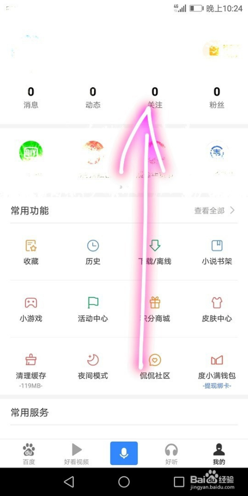 在手机上打开的浏览器首页中选择我的模块;