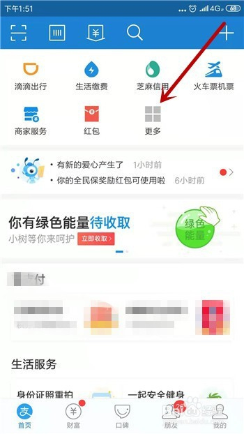 先找到蚂蚁庄园,点击首页的【更多】,如图所示。