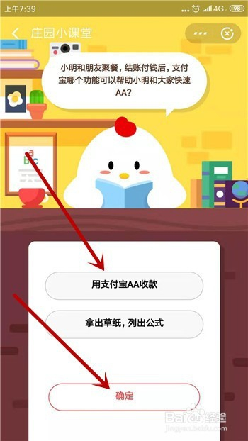 答题成果中选择谜底【付出宝AA付条目】,点击【确定】按钮。