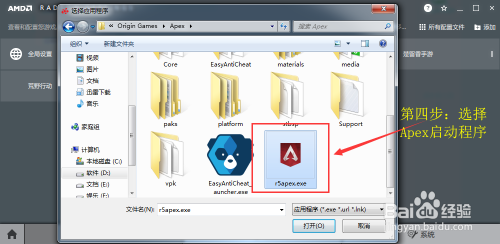 点击“浏览”选项今后,在文件办理器中找到Apex游戏的启动程序。找到今后选择添加即可设置装备摆设挪用独显当作功。