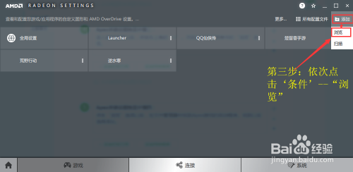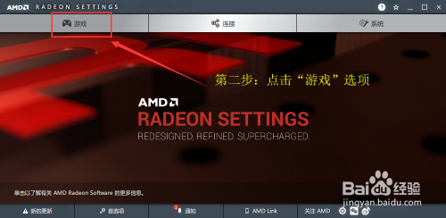 游戏玩家打开A卡自力显卡办理面板今后,点击办理界面上的“游戏”选项。