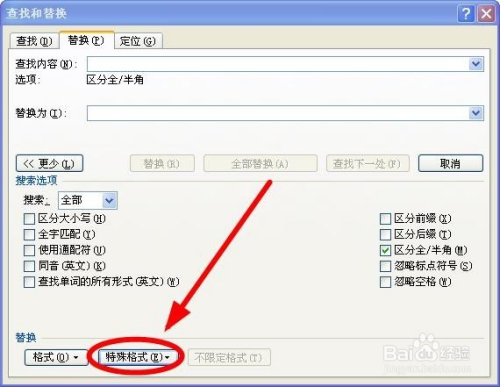 在弹出的“查找和替代”对话框中,单击“替代”选项卡