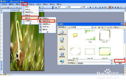 建造立春骨气书签:在网上搜刮立春特有的景色图片作为布景图,把图片保留到电脑。然后在WORD菜单那边点击插入——图片——来自文件,选择立春的图片插入。