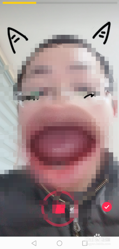 将抖音小恶魔大嘴巴特效视频拍摄好后直接点击【√】进入编纂界面,然后配上音乐什么的,如下图所示。