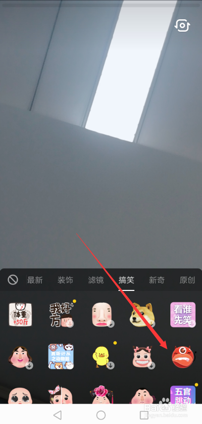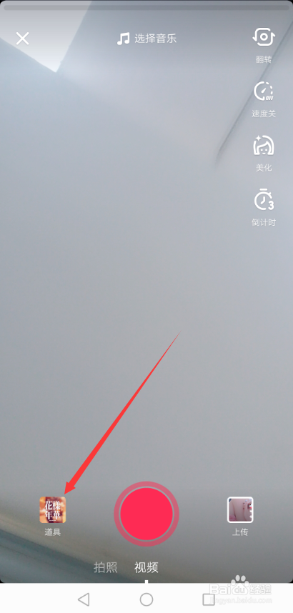 在拍摄界面里直接点击左下角的【道具】按钮,如下图所示。