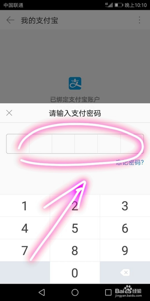 接着在呈现的输入付出密码框中输入我们的付出宝密码;