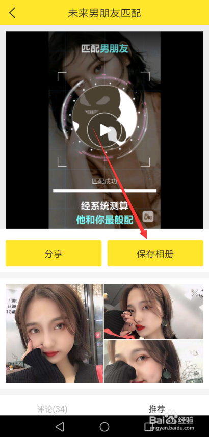 匹配男伴侣特效视频建造好后,直接点击保留相册,如下图所示。