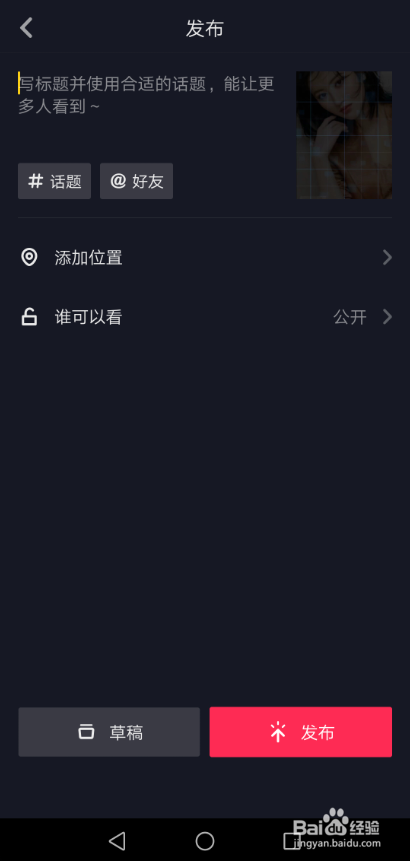 此时直接打开抖音短视频APP,然后在拍视频那边把适才保留好的匹配男伴侣视频上传上去,然后在点击发布就可以了,这样抖音匹配男伴侣特效就做好了,如下图所示。