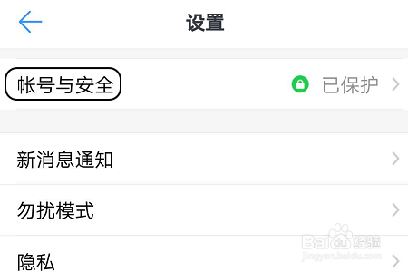 然后在跳转到的设置页面中,我们点击“账号和平安”这一项,然后即可看到新页面中的“平安密码锁定”功能了;