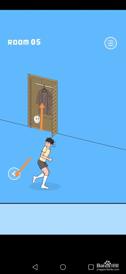 在右边房间里,点击衣柜,衣柜打开后,点击衣柜里的衣服,然后点击标的目的左箭头进入左边的房间。