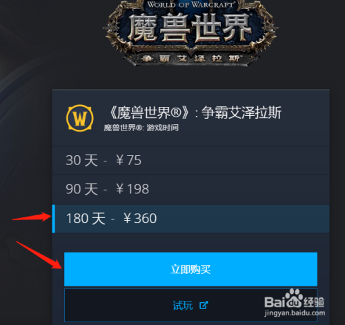 点击战网采办今后,在新页面选择180天,点击当即采办;