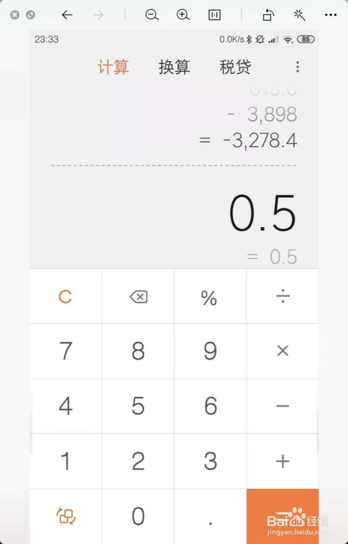 点击%,那么此时即可在计较器上输入,例如0.5,就是百分之五十。