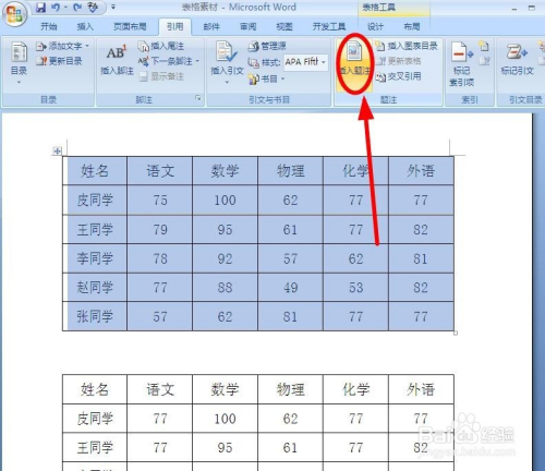 选定要插入题注的素材。表格的话,可以选定整个表格,也可以拔取表格的一部门
