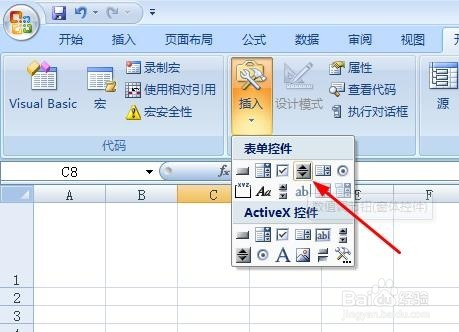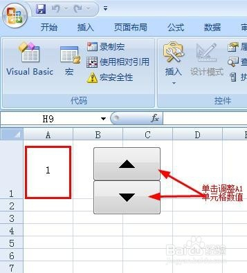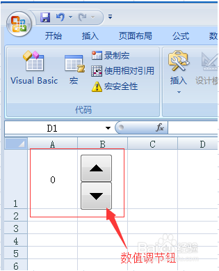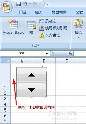在需要插入数值调节钮处单击鼠标左键。此时就呈现数值调节钮。