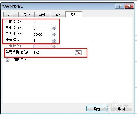 按本身需要,设置当前值、最小值、步长、单位格链接。