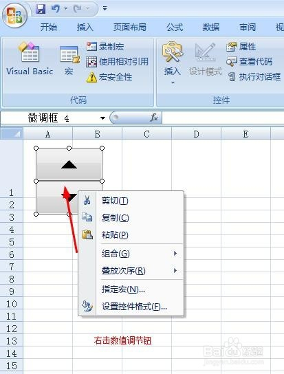 右击插入的数值调节钮。