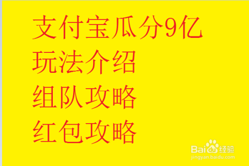 支付宝瓜分9亿怎么玩?支付宝瓜分分9亿现金怎么组队?支付宝瓜分9亿现金什么法则?支付宝是大师常利用的一个支付东西,并且支付宝老是呈现各类各样的现金活动,让大师很欢快,这不又呈现一个支付宝瓜分9亿现金的活动,今天就给大师说一下支付宝瓜分9亿的弄法。