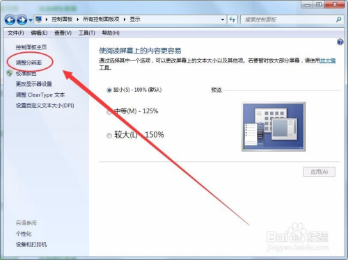 单击分辩率后的选项,选择一个分辩率,例如1024×768。