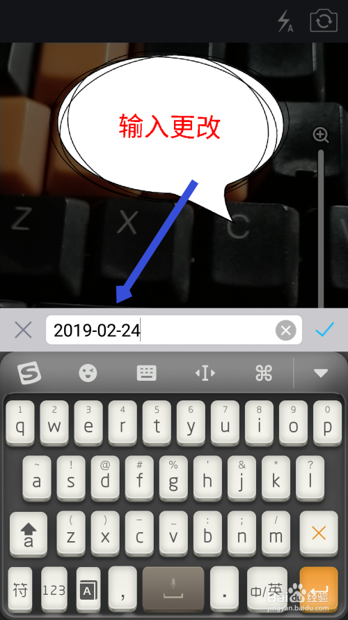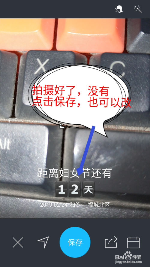 若是照片拍摄好了,可是还没有点击保留选项,水印上面的信息也是可以点窜的,同样点击点窜。如图所示