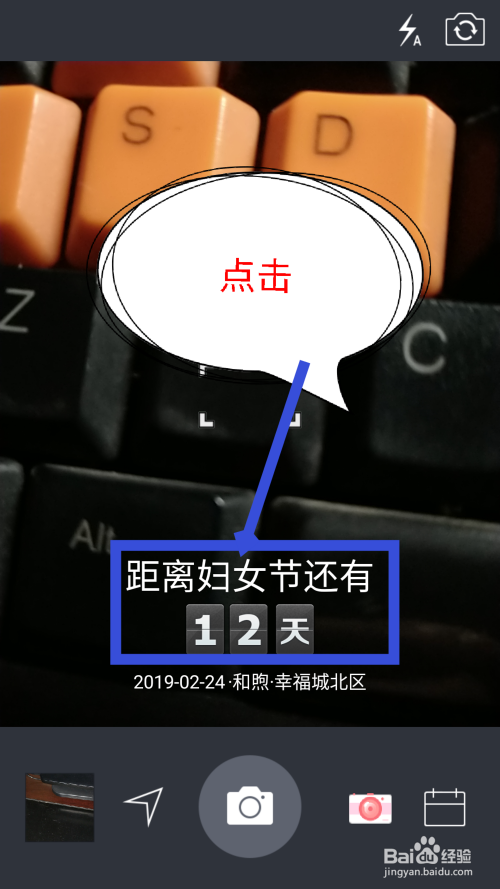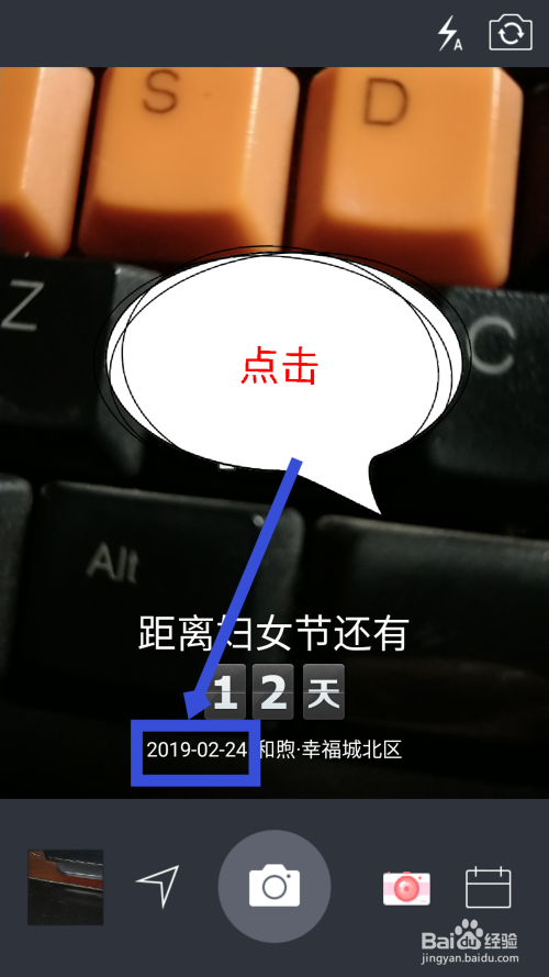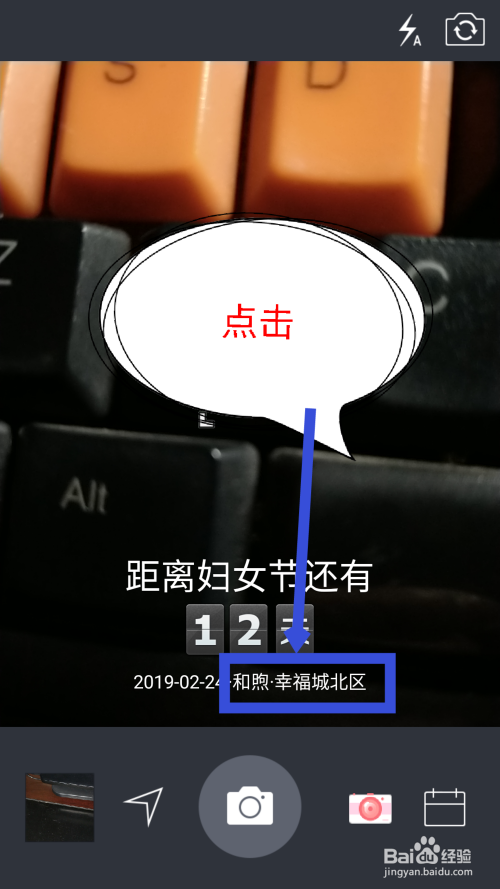 设置完时候水印后,在拍摄界面能看到当前的水印,点击水印上面的文字。如图所示