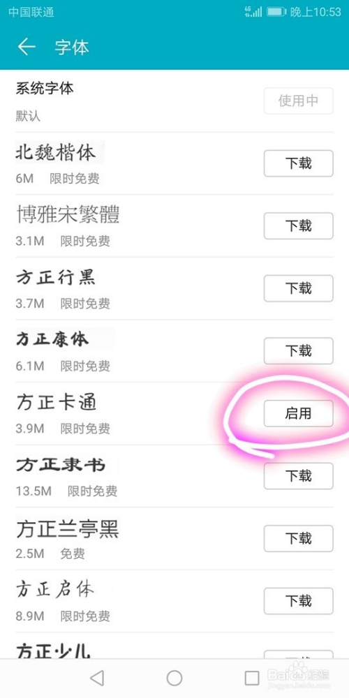 当该样式字体下载完毕后,我们可以或许看到适才的下载字样酿成启用,点击启用;
