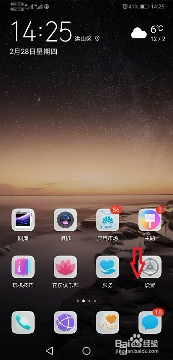 首先我们打开我们的华为手机,在华为手机的本家儿页面功能列表中找到设置按钮,而且点击设置。
