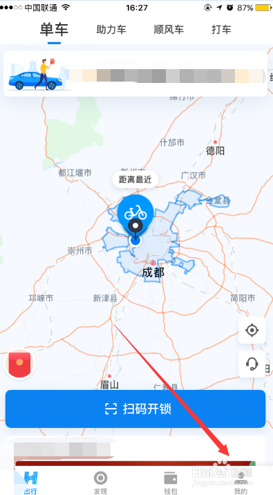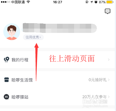 在哈啰出行的小我界面,我们要往上滑动页面,如下图所示