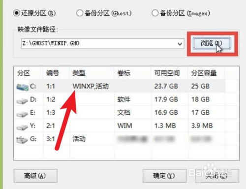 此时看到弹出的窗口,点击还原,然后点击C盘。
