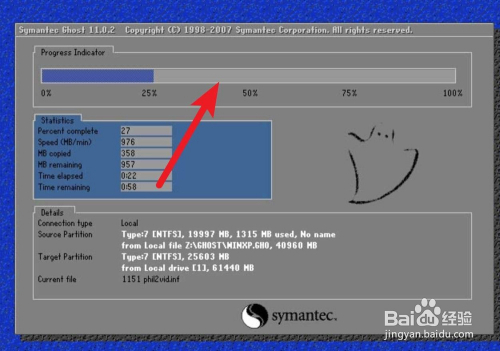 之后点击确定,期待箭头上的蓝色的进度到百分之百。