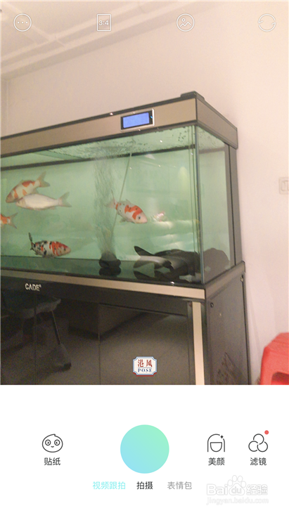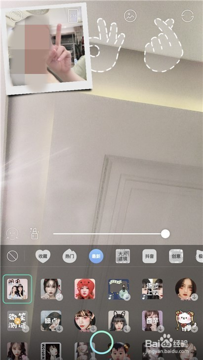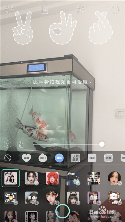 这样点击之后,上面有手势,我们直接切换镜头,进行自拍。