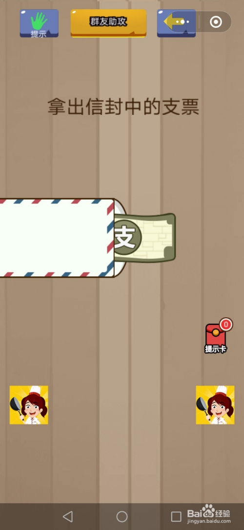 第55关先用手指按住信封,接着将手机横过来,然后支票从信封中失落出来就过关了。