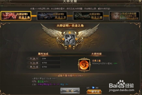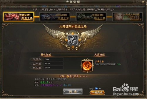 然后就可以获得巨匠醒觉第一阶段炎龙之角的奖励了。