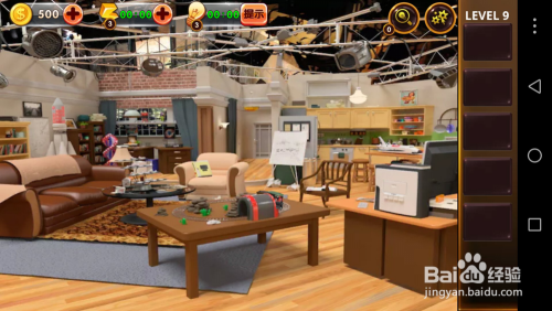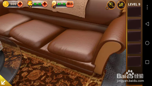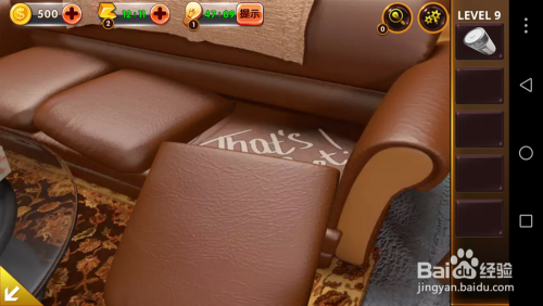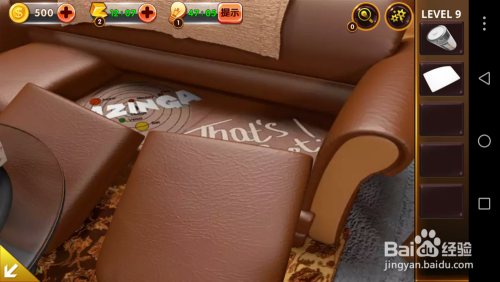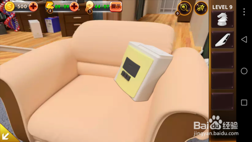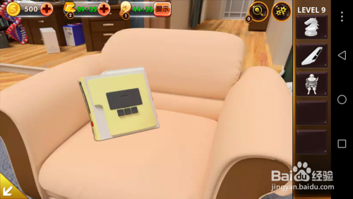 点击左面的沙发,将沙发垫移开,掏出里面的电池和纸张。
