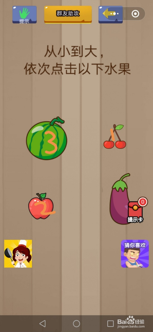第17关先点击荔枝,接着点击苹果,最后点击西瓜就过关了。