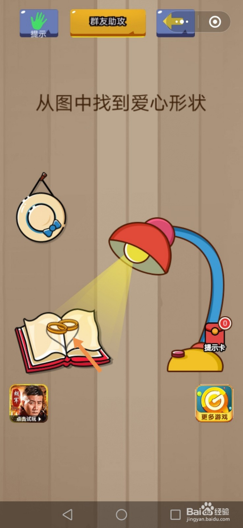 第12关先点击台灯上的红色按钮,然后点击书中的爱心外形就过关了。